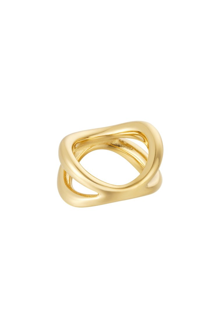 Hoe cool is deze gouden blikvanger ring in een verbonden vorm!