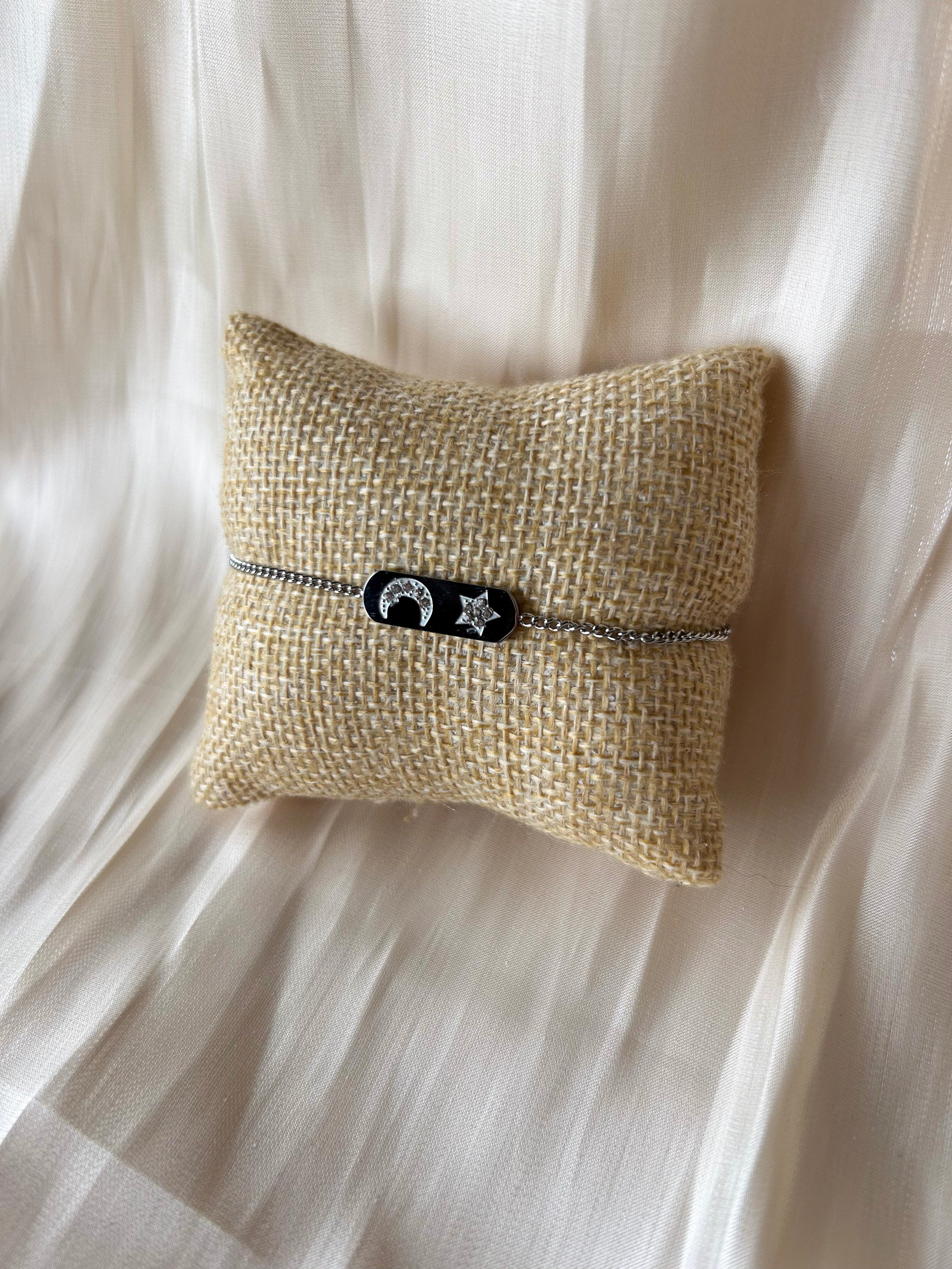 Hoe leuk is deze zilverkleurige armband met zirkonia steentjes in de vorm van een ster en een maan.