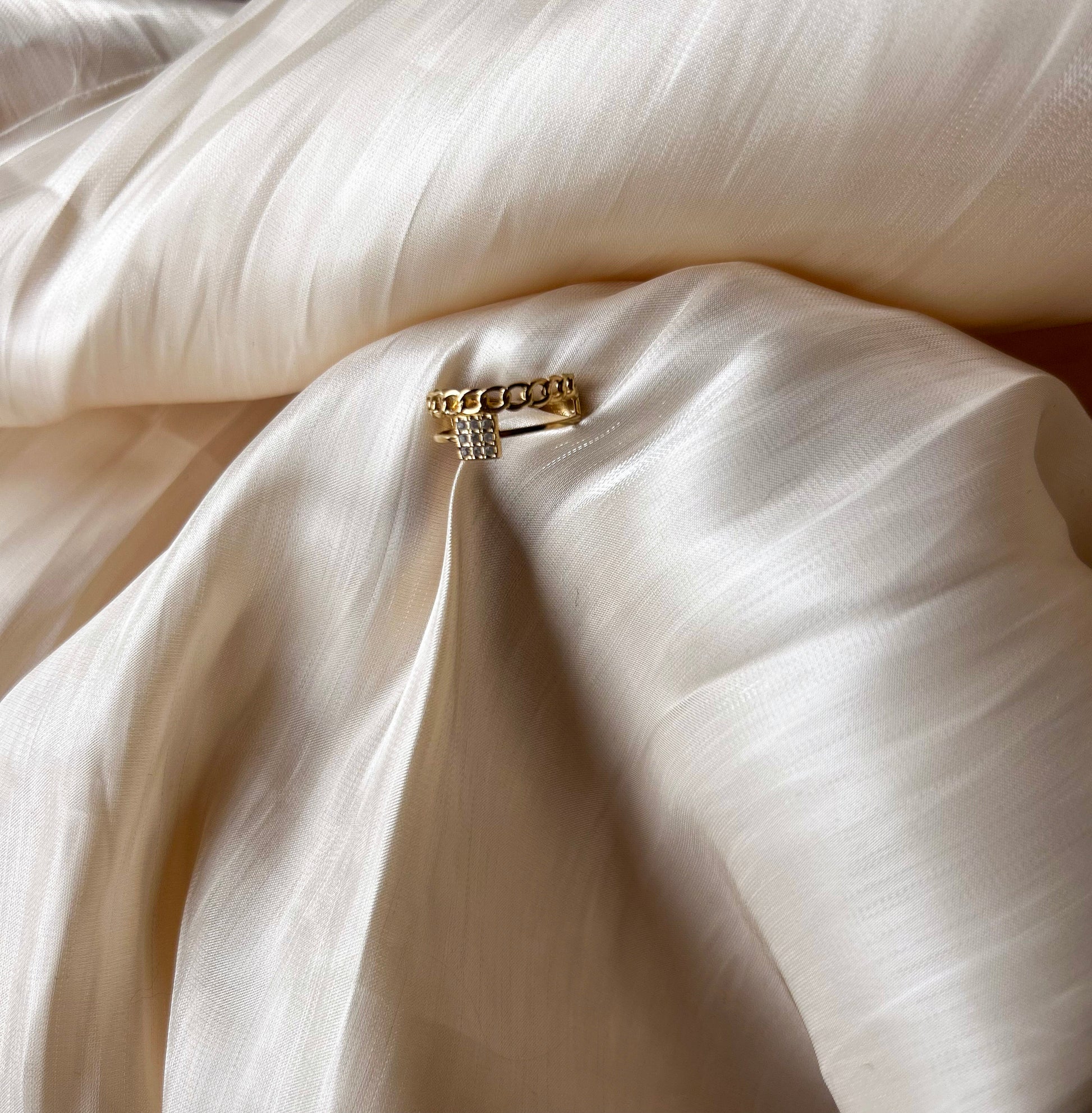 Gouden dubbele ring met een linkrand en een strass detail. Super leuk om deze ring te combineren met verschillende ringen